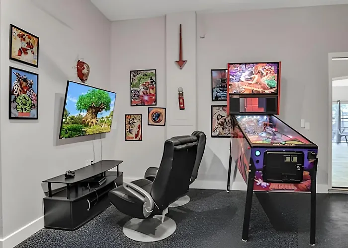 The 240 m² Dnf - 7761 - 6Br Cheerful Home W/ Game Room & Pool is approximately 10 minutes' drive from Finding Nemo Puppet Theater and boasts spa facilities such as a Jacuzzi. This 5-bedroom apartment features Wi-Fi, along with a car park for guests travelling by car.